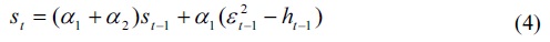 In addition, by rearranging equation (2), Engle and Lee (1999) specify the dynamics of the short-run volatility components as follows: