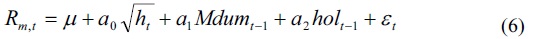 The estimated mean equation in Table 3 shows that the coefficient for the conditional variance (