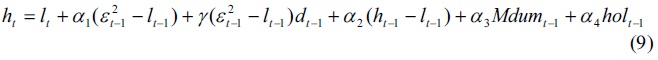 To examine the effect of initial margin on short- and long-run volatilities, our empirical model is specified by adding the initial margin dummy into equation (1), (2) and (3) as follows: